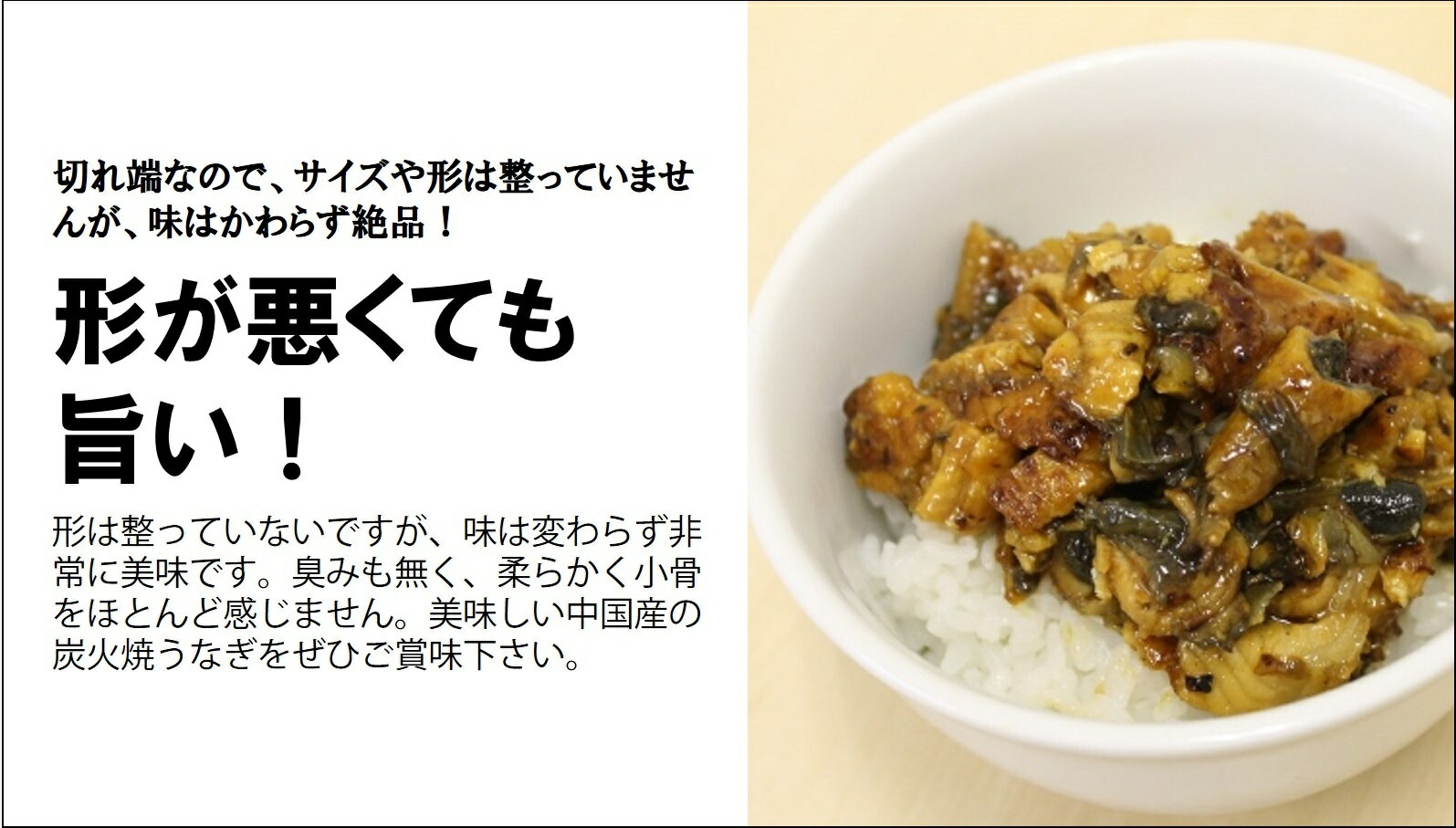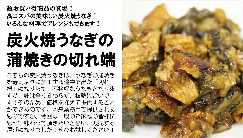 美味しい大容量のウナギとなります!うなぎが蒲焼きへ加工された際に出てきた切れ端をまとめたものになり、形は整っておりませんが、味は抜群!なんと業務用サイズの大容量500gも入った商品となります。